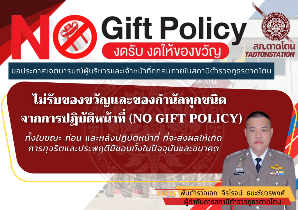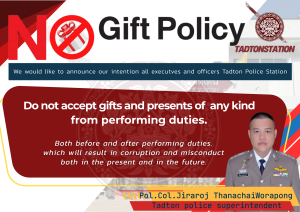 ประกาศเจตนารมณ์ไม่รับของขวัญหรือของกำนัลทุกชนิดจากการปฏิบัติหน้าที่