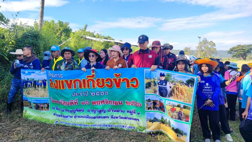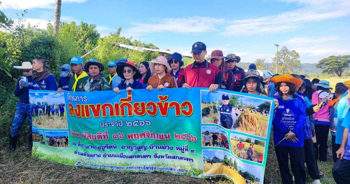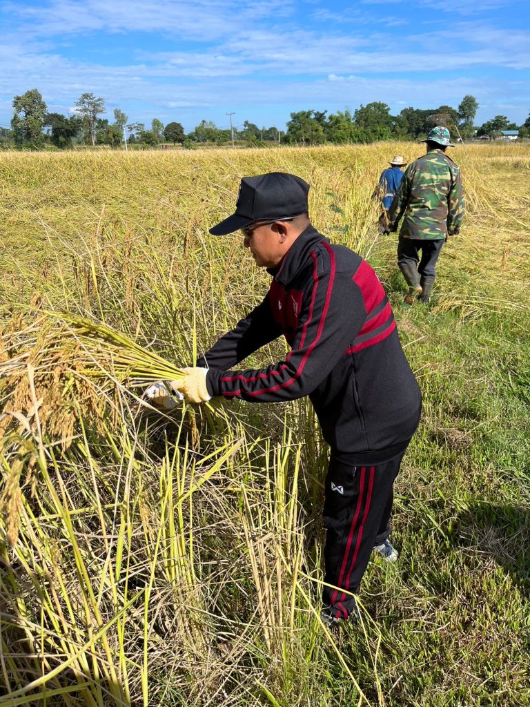 ข้าราชการตำรวจ สภ.ตาดโตน จำนวน 10 นาย และ กต.ตร.สภ.ตาดโตน เข้าร่วมกิจกรรมโครงการลงแขกเกี่ยวข้าวประจำปี 2566