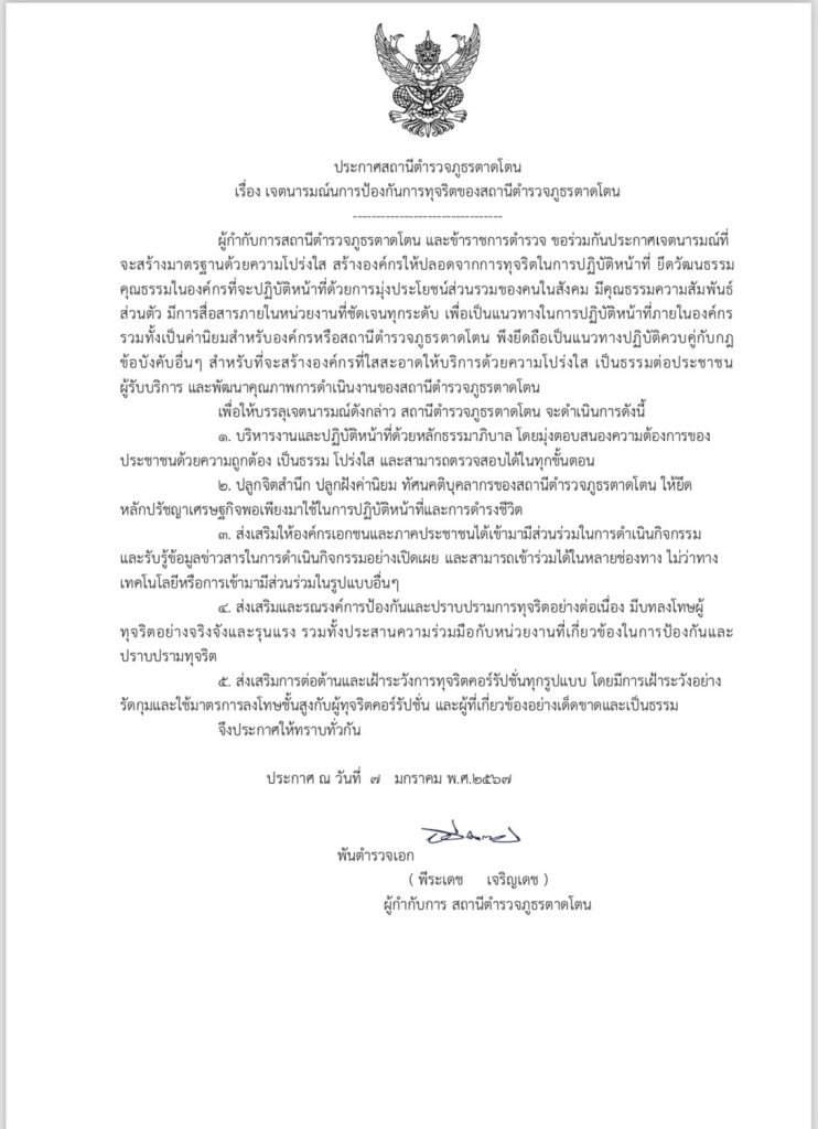 การประกาศเจตนารมณ์ของหัวหน้าสถานี 7 มกราคม 2567 โดย admintadton / การมีส่วนร่วมของหัวหน้าหน่วย,ข่าวภารกิจผู้บังคับบัญชา