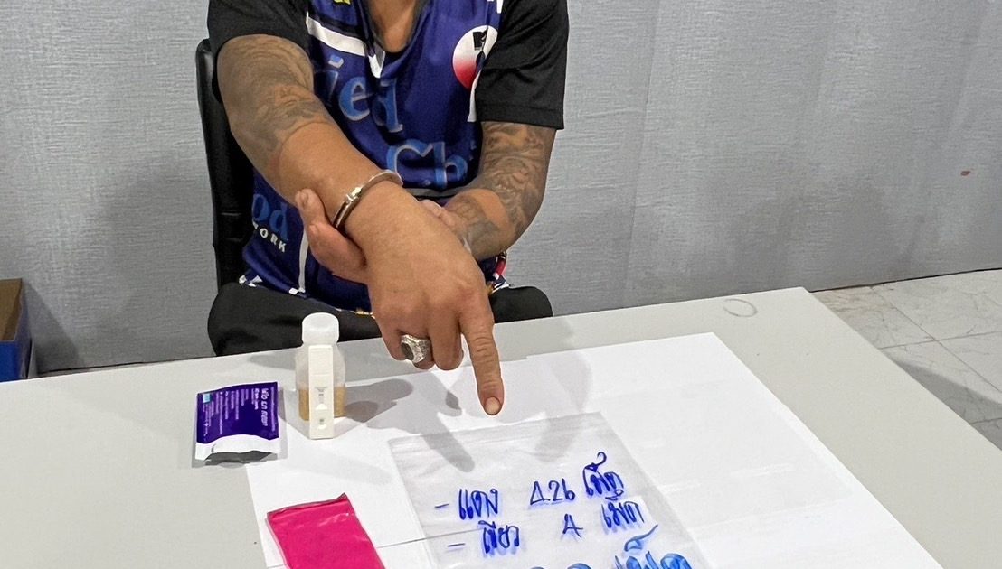 ยาบ้าลักษณะเม็ดกลมเเบนด้านหนึ่งมีอักษรภาษาอังกฤษ A อีกด้าน Y1 เม็ดสีเขียว จำนวน 2 เม็ด - ยาบ้าลักษณะเม็ดกลมเเบนด้านหนึ่งมีอักษรภาษาอังกฤษ WY เม็ดสีเเดง จำนวน 30 เม็ด