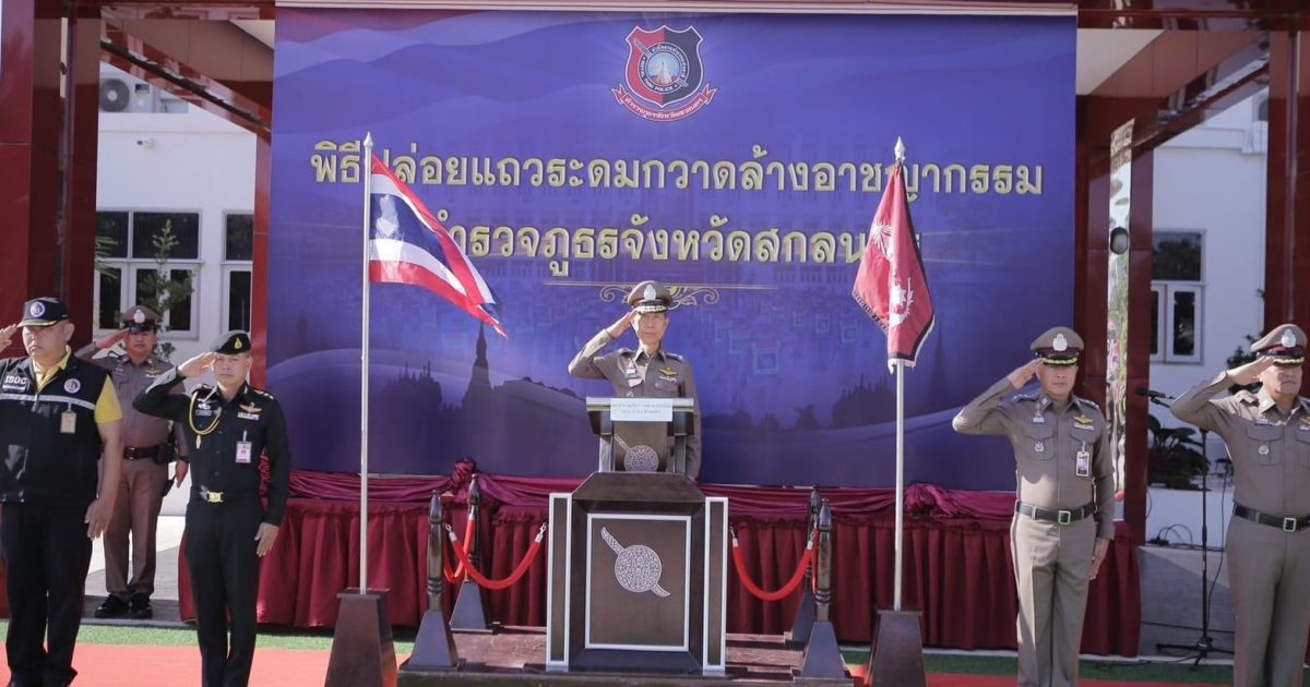ณ บริเวณลานฝึกอินทรจักร์ หน้าอาคารที่ทำการตำรวจภูธรจังหวัดสกลนคร