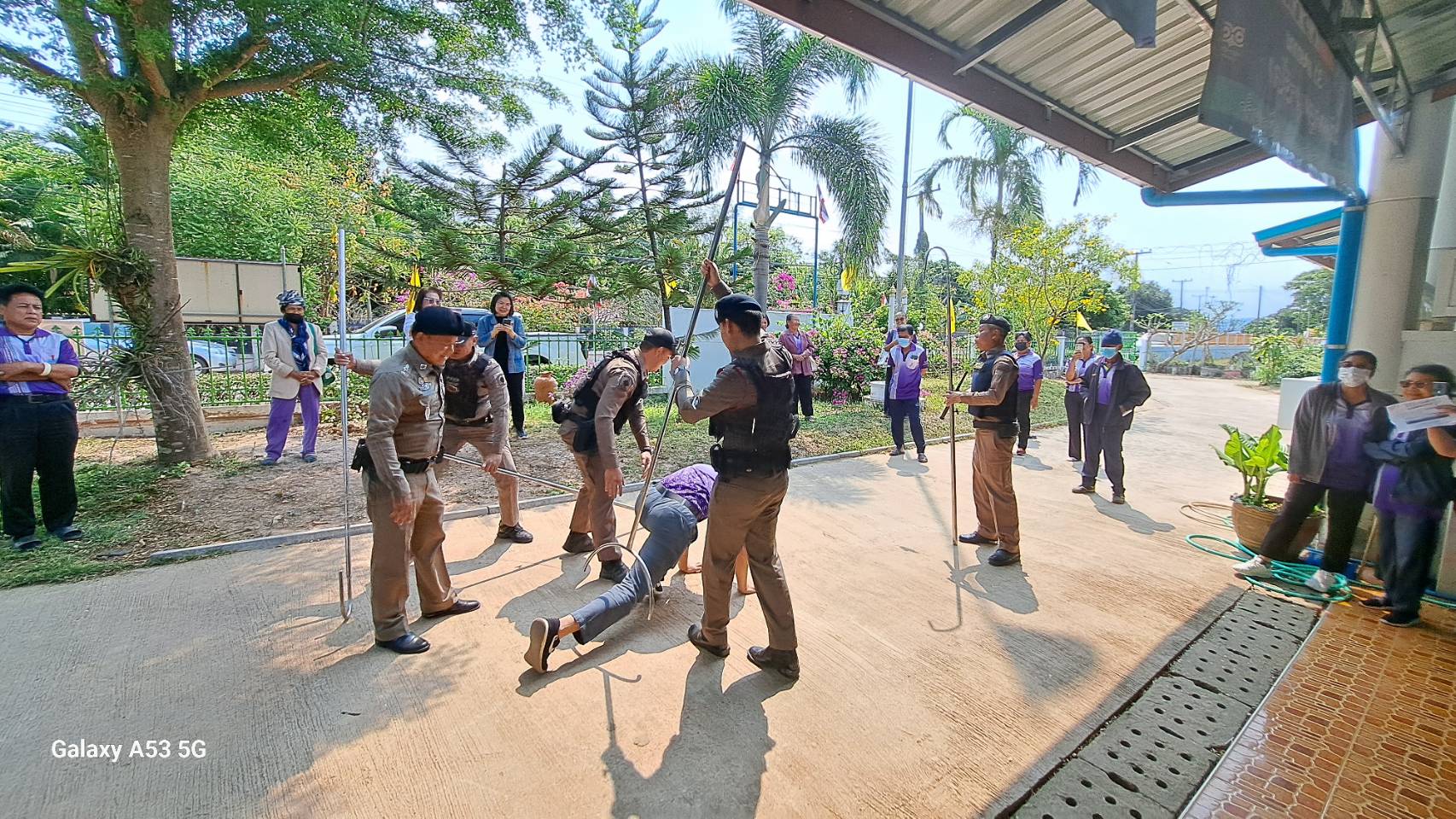 เมื่อวันที่ 2 มี.ค.67 เวลา 08.00 น.-12.00 น. โดยการอำนวยการของ พ.ต.อ.พีระเดช เจริญเดช ผกก.สภ.ตาดโตน มอบหมายให้ พ.ต.ท.ทวีศักดิ์ ทองเพชร สวป.สภ.ตาดโตน เข้าร่วมเป็นวิทยากรให้ความรู้ในหัวข้อบรรยาย”บทบาทเจ้าหน้าที่ตำรวจในระบบการจัดการดูแลผู้ป่วยจิตเวชอาการกำเริบและการบังคับรักษา” ณ ที่ห้องประชุมโรงพยาบาลส่งเสริมสุขภาพตำบลบ้านนาคำ พร้อมทีมงานสายตรวจชุดที่ 3 (ร้อยเวร20 สายตรวจ)ร่วมสาธิตการใช้ไม้ง่ามในการเข้าระงับเหตุและควบคุมตัวผู้ป่วยจิตเวชเพื่อนำตัวส่งไปบำบัดรักษาใน ร.พ.ของรัฐต่อไป โดยมีผู้เข้าร่วมประชุมจำนวนมากให้ความสนใจในการสาธิตครั้งนี้ เหตุการณ์สาธิตทั่วไปปกติ