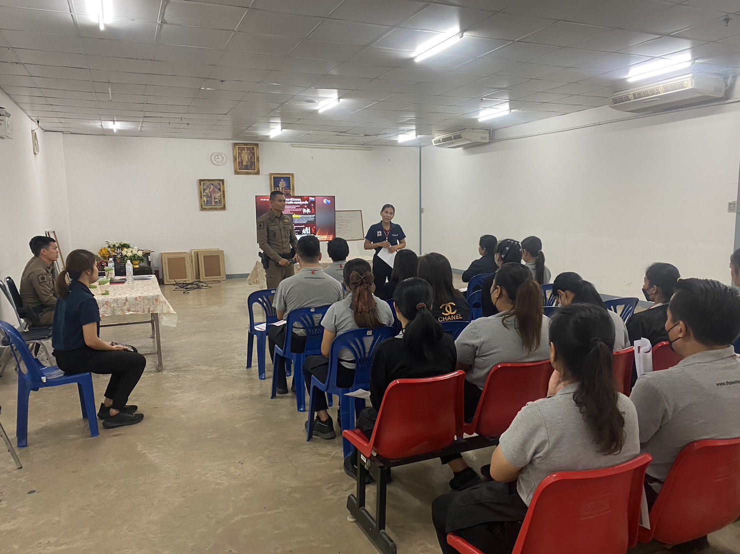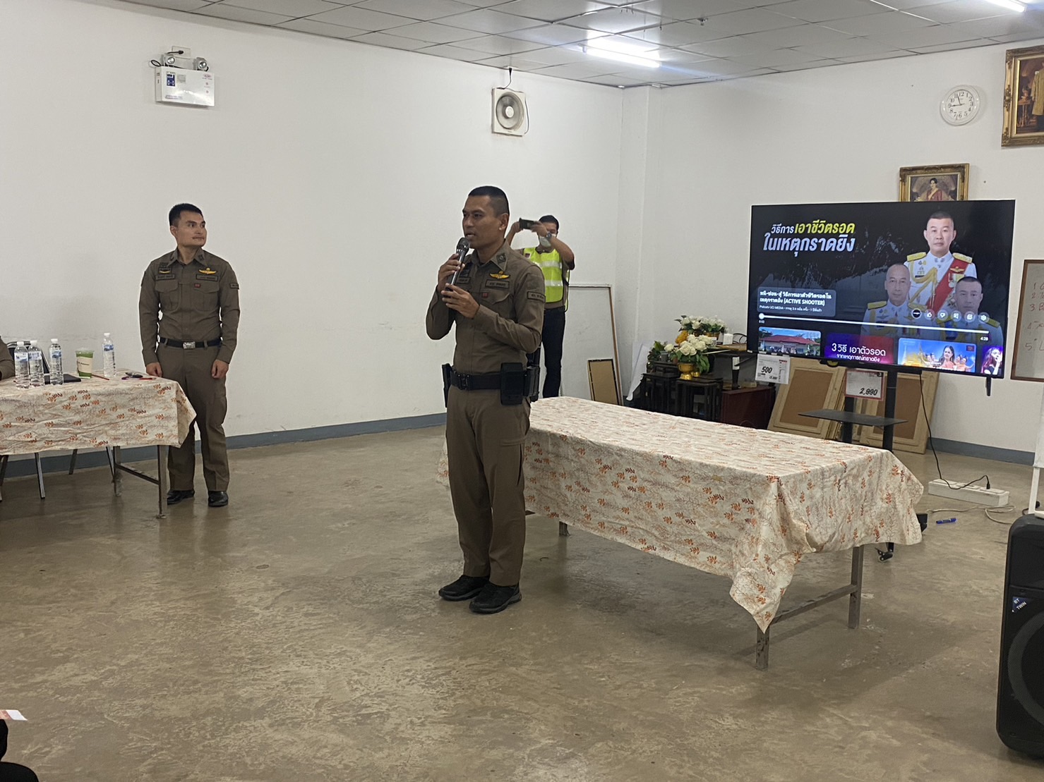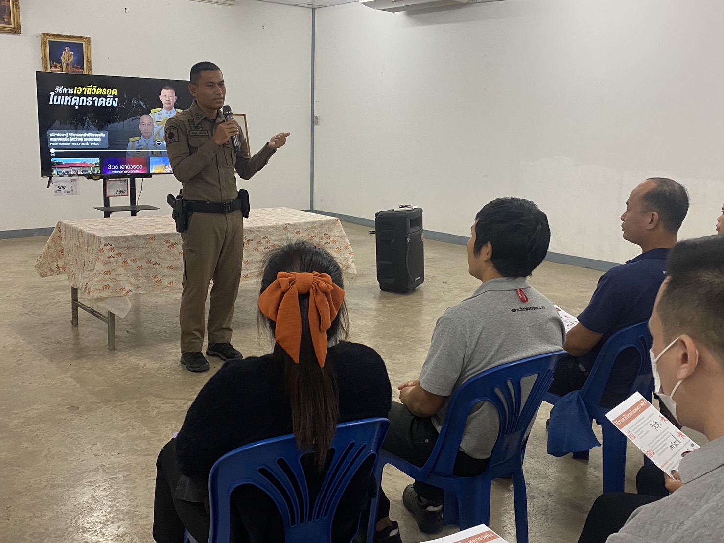 วันที่ 24 พ.ย. 2566 เวลา 10.00 น. ร.ต.อ.ทวีวุฒิ นันทะสุข รอง สวป.สภ.ตาดโตนพร้อมเจ้าหน้าที่ชุดมวลชนสัมพันธ์บรรยายให้ความรู้หัวข้อเผชิญเหตุกราดยิง “หนี ซ่อน สู้” แก่พนักงานไทวัสดุ ณ ห้องประชุมไทวัสดุสาขาสกลนคร อ.เมือง จ.สกลนคร