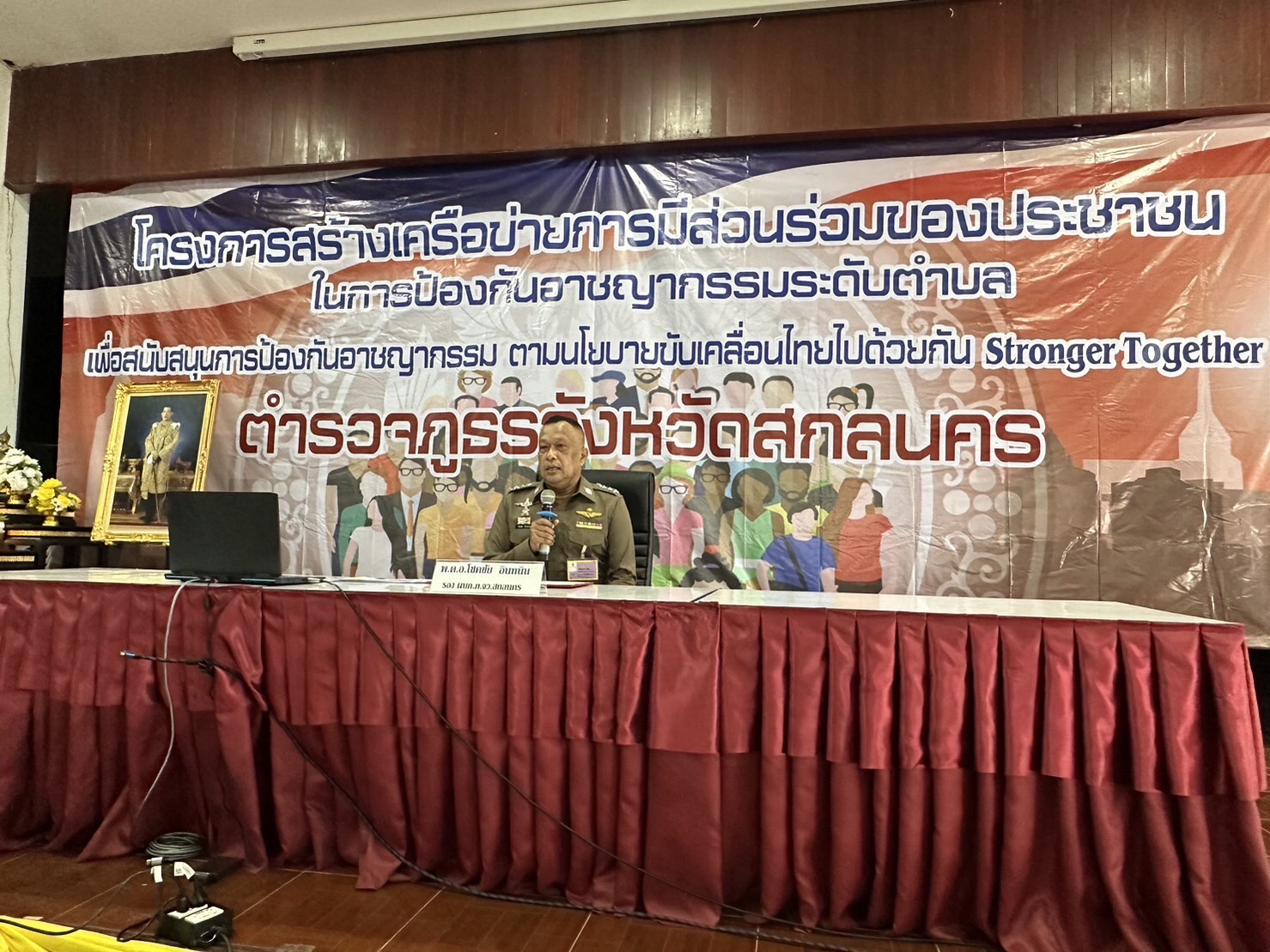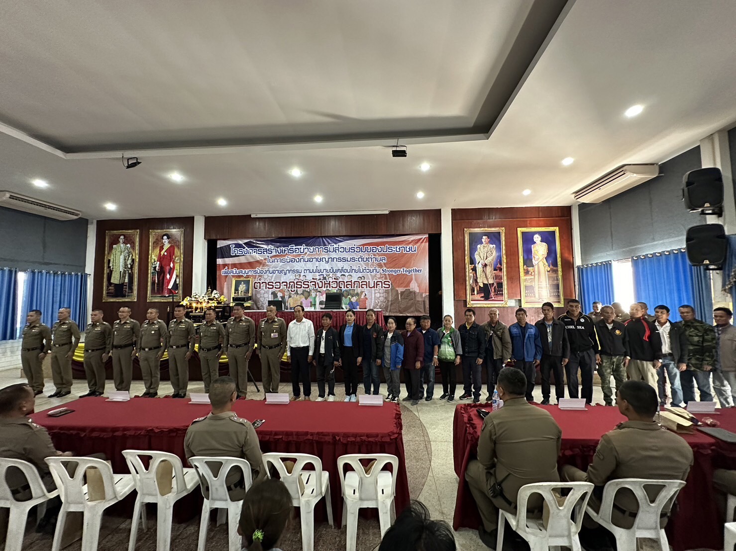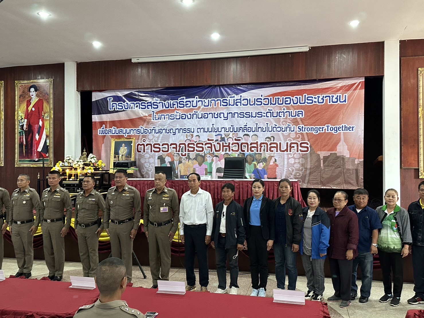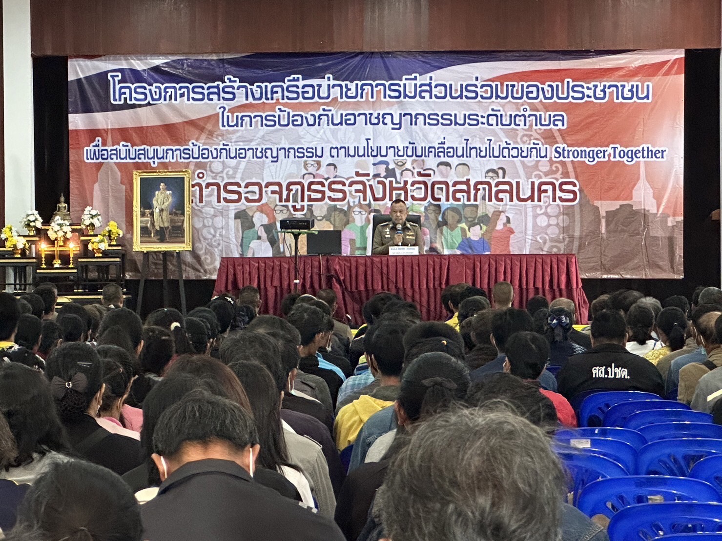 วันที่ 29 พ.ย.2566 เวลา 09.00 น. พล.ต.ต.สมจิตร เหล่ามลคลนิมิต ผบก.ภ.จว.สกลนคร มอบหมายให้ พ.ต.อ.โชคชัย อินทะนิน รอง ผบก.ภ.จว.สกลนคร เป็นประธานในพิธีเปิดโครงการอบรมสร้างเครือข่ายการมีส่วนร่วมของประชาชนในการป้องกันอาชญากรรมระดับตำบล ตำรวจภูธรจังหวัดสกลนครประจำปีงบประมาณ พ.ศ. ๒๕๖๗ พร้อมด้วย พ.ต.อ.เศกสรร สุขประเสริฐ รอง ผบก.ภ.จว.สกลนคร และ พ.ต.อ.สุริยา ชาโพธิ์เนตร ผกก.(สอบสวน)ฯ พ.ต.อ.ชัชวาลย์ ดวงแก้ว ผกก.สภ.เมืองสกลนคร, พ.ต.อ.สุรพล ปาระคะ ผกก.สภ.โคกศรีสุพรรณ, พ.ต.อ.พีรเดช เจริญเดช ผกก.สภ.ตาดโตน, พ.ต.อ.กิตติ แก้วทินกร ผกก.สภ.เต่างอย, พ.ต.ท.พินิจ เขตสกุล สวญ.สภ.สร้างค้อ, พ.ต.ท.ภาสกร หนุดตะแสง สว.สภ.ดงมะไฟ, ข้าราชการตำรวจฝ่ายอำนวยการ ภ.จว.สกลนคร และผู้เกี่ยวข้องร่วมพิธีเปิดโครงการฯ มีผู้เข้ารับการอบรม รวม ๕๕๐ คน ณ หอประชุมถนอมจันทร์เปล่ง กก.ตชด.๒๓ อ.เมืองสกลนคร จว.สกลนคร