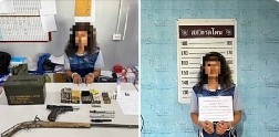 1. อาวุธปืนแก๊ปยาวแบบไทยประดิษฐ์ จำนวน ๑ กระบอก ซุกซ่อนไว้ข้างตู้กระจกภายในห้องพักบ้านพักหลังที่เกิดเหตุ