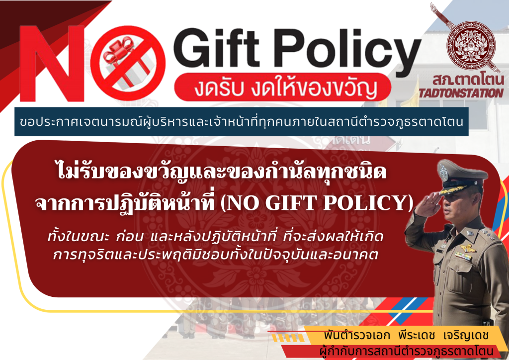 ร่วมประกาศเจตนารมณ์ที่จะไม่รับของขวัญและของกำนัลทุกชนิดจากการปฏิบัติหน้าที่ (No Gift Policy)