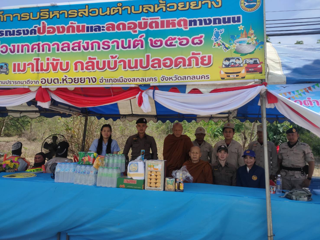 วันนี้ 13 เมษายน 2568 เวลา 12.30 น.นางสาวจิราภรณ์ เบิกบานดี นายอำเภอเมืองสกลนคร ออกตรวจเยี่ยมเจ้าหน้าที่ปฏิบัติงานจุดตรวจบริการประชาชน อบต.ห้วยยาง ได้มอบน้ำดื่มและถุงเยี่ยมให้แก่เจ้าหน้าที่เพื่อเป็นขวัญและกำลังใจ