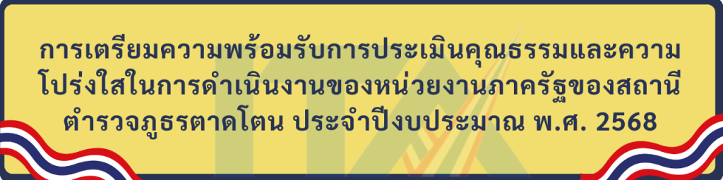 คำสั่งแต่งตั้งคณะทำงานขับเคลื่อนและกำกับติดตามการประเมินคุณธรรมและความโปร่งใสในการดำเนินงานของหน่วยงานภาครัฐ (Integrity &arency Assessment: ITA) ของสถานีตำรวจภูธรตาดโตนประจำปีงบประมาณ พ.ศ. 2568