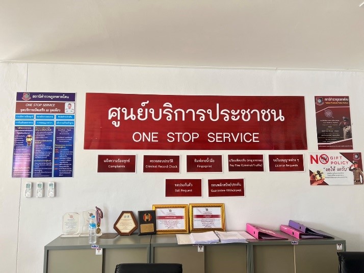 มีการจัดรวมงานบริการไว้ในบริเวณเดียวกัน หรือต่อเนื่องกัน ได้แก่ งานรับแจ้งความ ร้องทุกข์กล่าวโทษ และงานเปรียบเทียบปรับคดีอาญา และ/หรือคดีจราจร