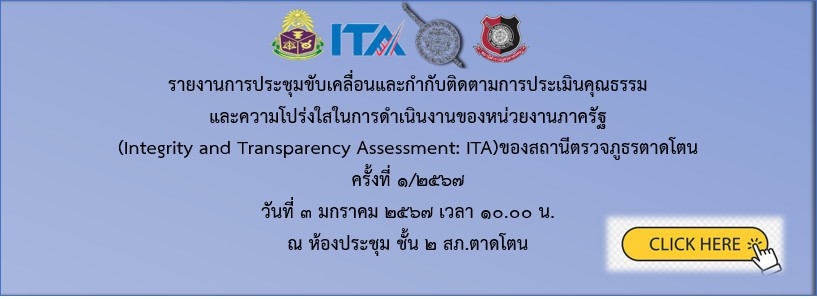 ติดไว้ในจุด บริการของสถานี เพื่อให้ประชาชนทราบว่า หน่วยงานประกาศว่าเจ้าหน้าที่ทุกคนในสังกัดไม่รับของขวัญหรือของกำนัลจากการปฏิบัติหน้าที่ และต่อต้านการรับสินบน โดย มี พ.ต.อ.พีระเดช เจริญเดช ผกก.สภ.ตาดโตน หัวหน้าหน่วยงานประกาศ