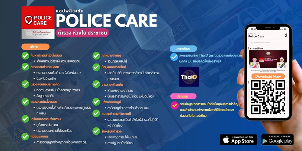 สำนักงานตำรวจแห่งชาติ พัฒนาแอปพลิเคชัน POLICE CARE เพื่อเป็นผู้ช่วยส่วนตัวในการดูแลความปลอดภัยและอำน